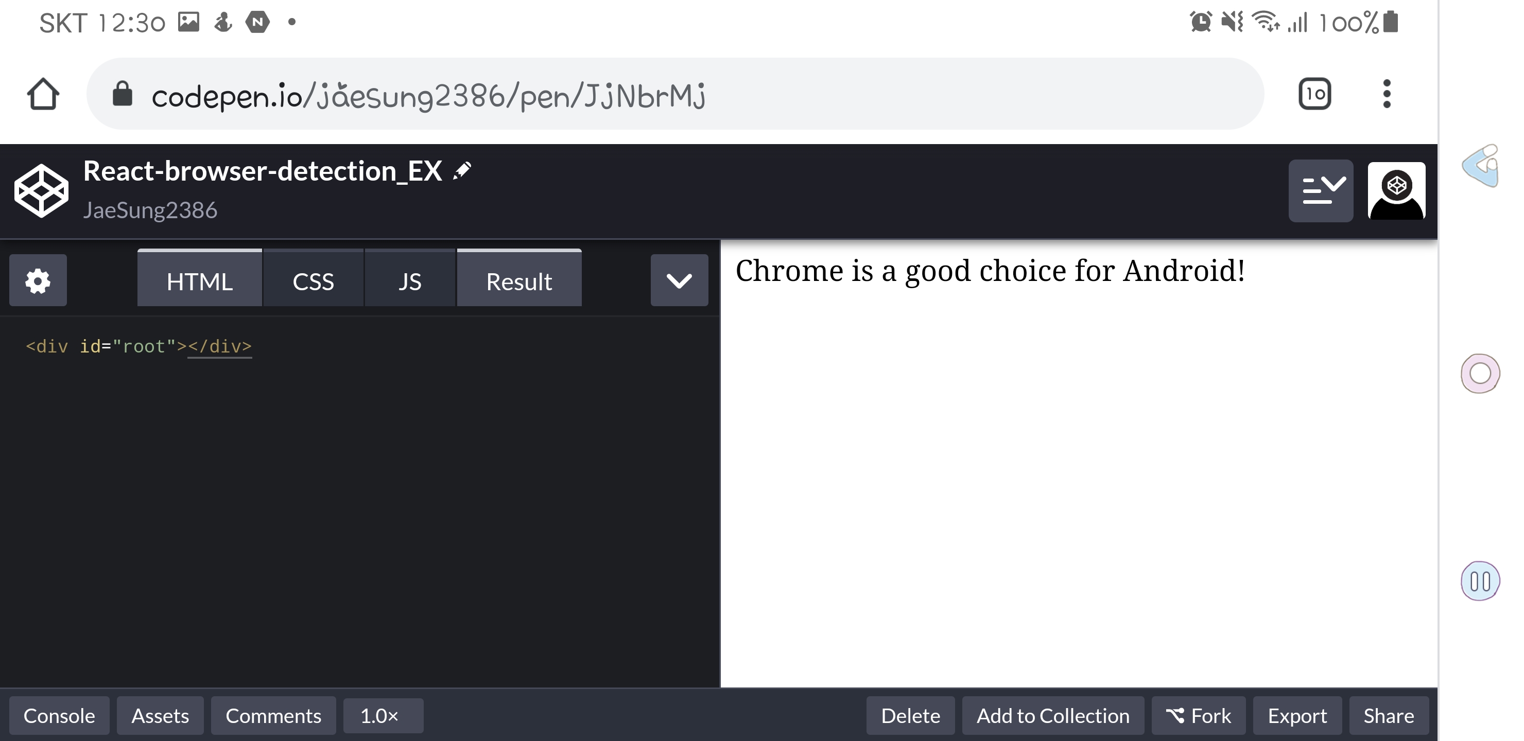 안드로이드 크롬에서 실행 결과