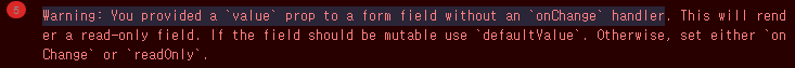 『 Warning: You provided a 'value' prop to a form field without an 'onChange' handler. This will render a read-only field. If the field should be mutable use 'defaultValue'. Otherwise, set either 'onChange' or 'readOnly' 』