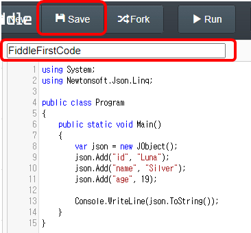 Newtonsoft.Json의 13.0.1 Version을 선택하고 아래 코드를 붙여 넣기 하여 Run을 클릭하면 정상적으로 실행됨을 확인할 수 있습니다.