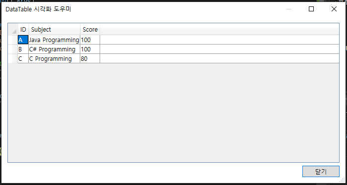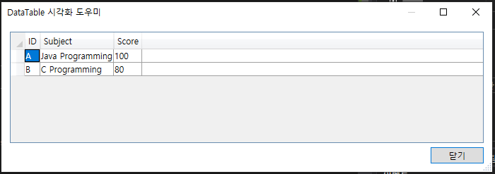 dt.Rows.Add("C", "C Programming", 80);