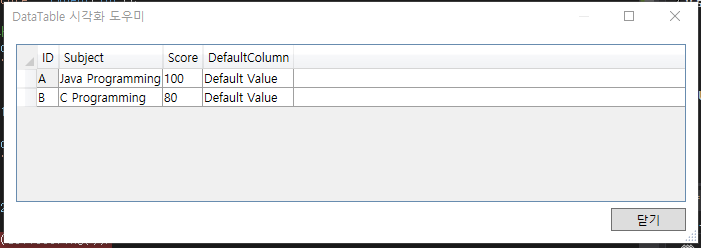 DefaultColumn 컬럼이 추가 되기 전 DataTable의 구조입니다.