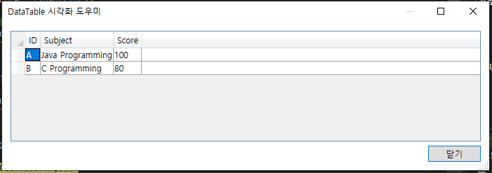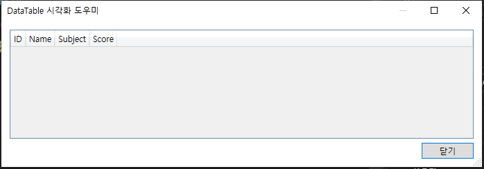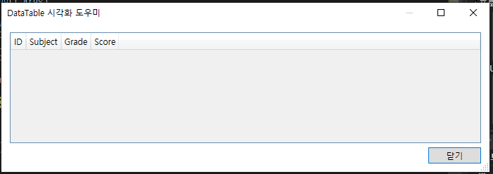 dt.Columns.Add("Grade", typeof(int)).SetOrdinal(dt.Columns.IndexOf("Score")); 실행 후