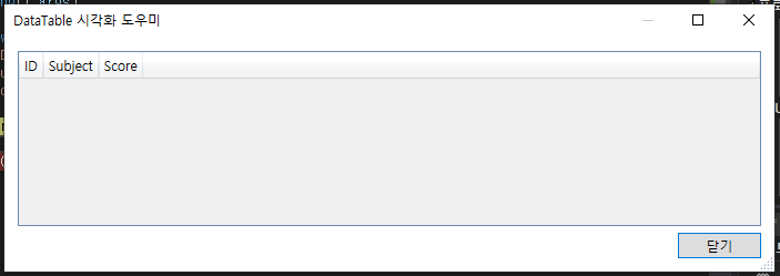 dt.Columns.Add("Grade", typeof(int)).SetOrdinal(dt.Columns.IndexOf("Score")); 실행 전