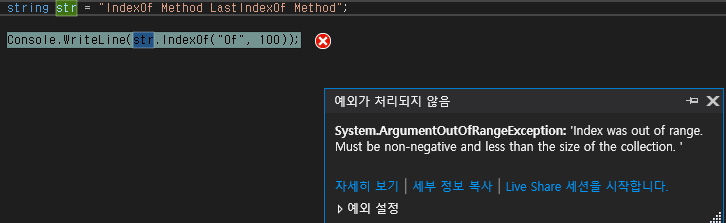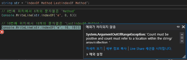 // 0번째 위치에서 str.Lengthr개의 문자열을 대상으로 "Method"를 찾습니다.