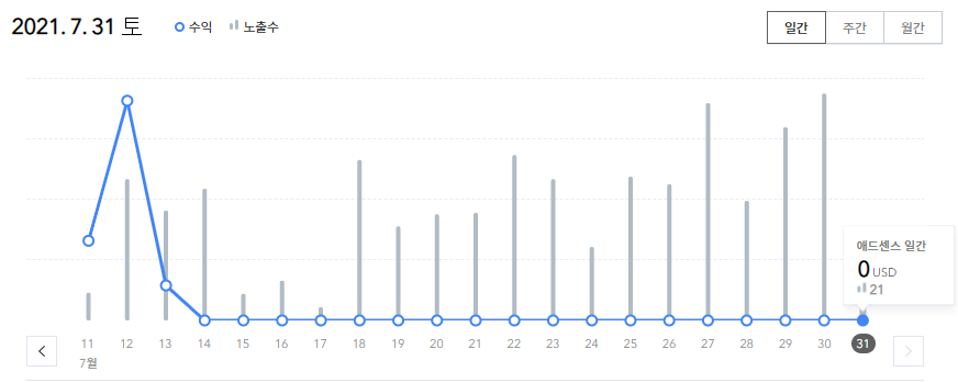 수익이 갑작스럽게 나온 이유는 직장 동료분들이 광고를 클릭해줘서입니다......