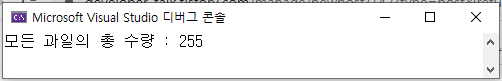 Console.WriteLine("모든 과일의 총 수량 : " + fruitTotalCount);