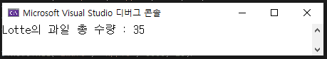 Console.WriteLine("Lotte의 과일 총 수량 : " + lotteFruitTotalCount);