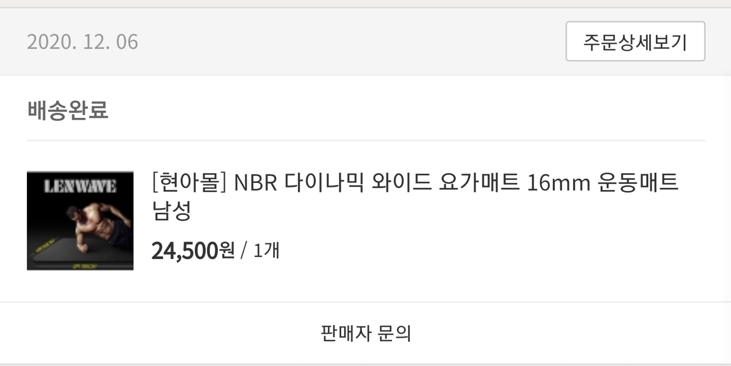 운동을 언제 시작한 지 정확한 기록은 없지만, 이 날 운동 매트를 구매한 걸로 보아 12월 초에 시작한 거 같다.
