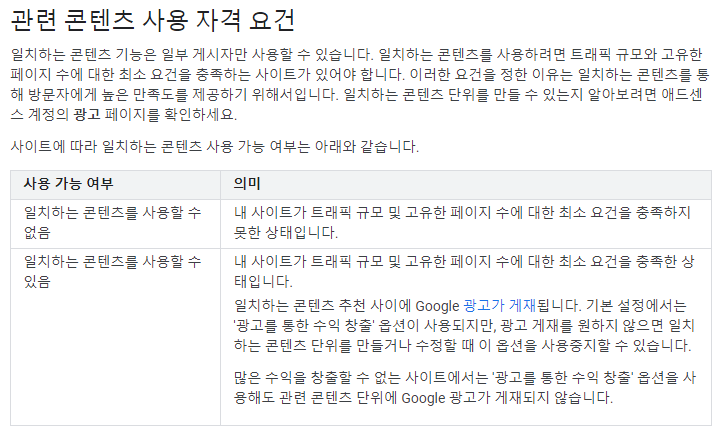 아래는 구글에서 말하는 일치하는 콘텐츠의 자격 요건입니다.