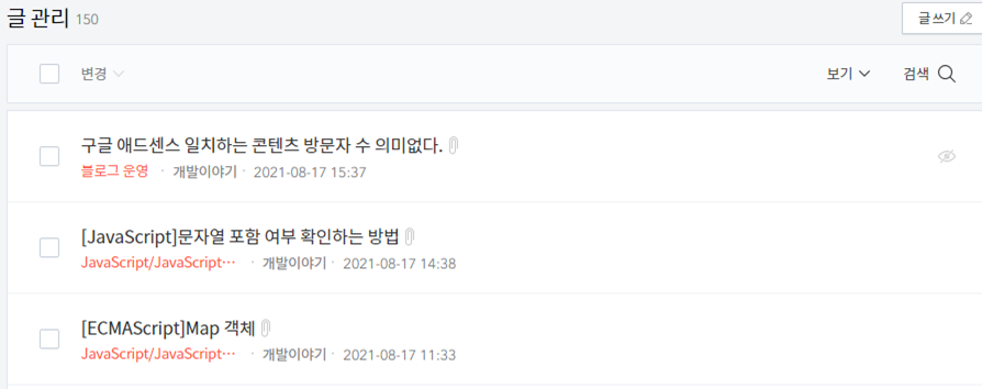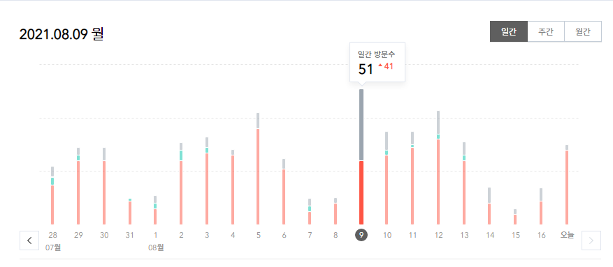 저는 방문자 수는 적지만, 게시글은 꾸준하게 작성하고 있는데요.