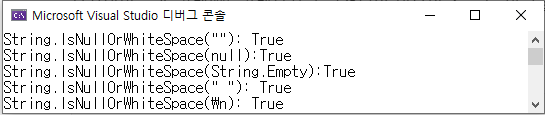 IsNullOrWhiteSpace 메서드는 아래 코드와 동일하게 동작합니다.