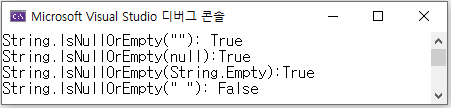 IsNullOrEmpty 메서드는 아래 코드와 동일하게 동작합니다.