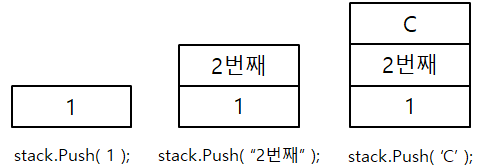 서로 다른 타입의 값을 Stack에 넣어야 하는 경우 object 타입의 배열을 전달하여 값을 초기화할 수 있습니다.