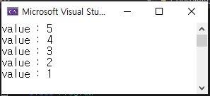 Stack은 최상단에서 아래로 값을 접근하기 때문에 마지막에 들어간 값부터 출력이 되었습니다.