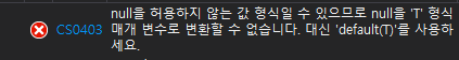 하지만, 제네릭 메서드는 Nullable 연산자를 사용할 수 없기 때문에 다른 방법으로 null을 반환하는 코드를 작성해야 합니다.