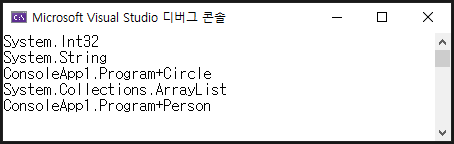GetType 메서드가 반환하는 자료형은 Name 프로퍼티로 확인할 수 있습니다.