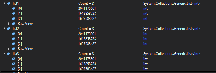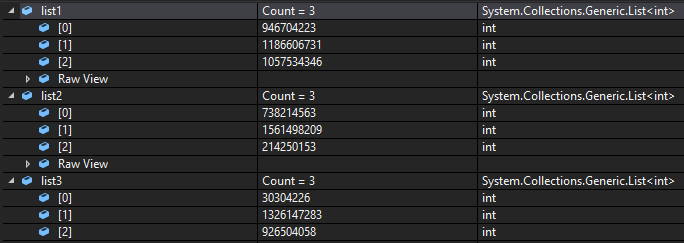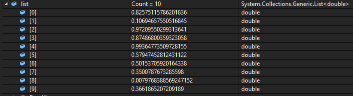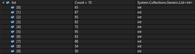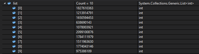 다음은 랜덤 값을 List<int>에 넣는 코드입니다.