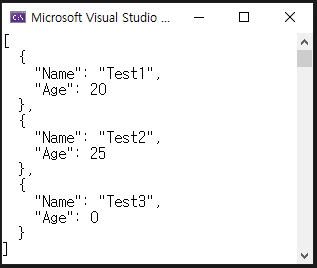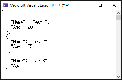 [{"Name":"한글1","Age":20},{"Name":"한글2","Age":25},{"Name":"한글3","Age":0}]