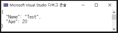 다음 코드는 직렬화 옵션인 WriteIndented을 true로 설정하여 들여 쓰기가 존재하는 JSON 문자열로 변환합니다.