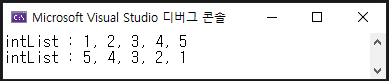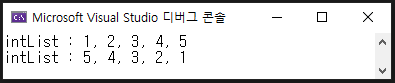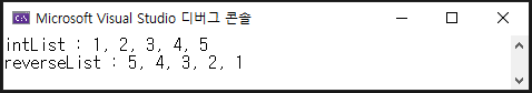 다음은 List<T>.Reverse() 메서드를 사용한 코드입니다.