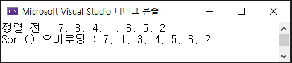 Console.WriteLine($"Sort() 오버로딩 : {String.Join(", ", intArray)}");