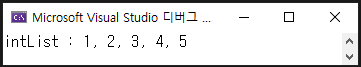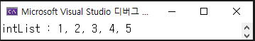 Console.WriteLine($"intList : {String.Join(", ", intList)}");