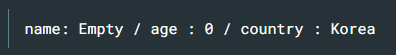 - 인수가 세 개인 생성자는 세 개의 인수를 name, age, country 필드에 값을 할당합니다.