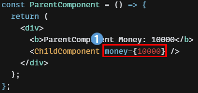 다음은 부모 컴포넌트인 ParentComponent가 자식 컴포넌트 ChildComponent에게 money라는 값을 props로 전달하는 코드입니다.