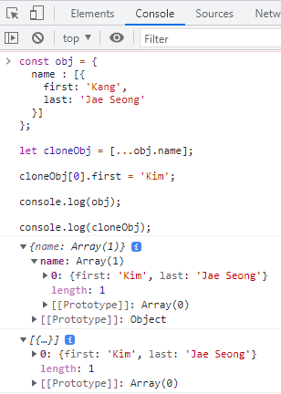 다음은 스프레드 연산자( ... )를 사용하여 객체를 복사 후 속성의 값을 변경하는 코드입니다.