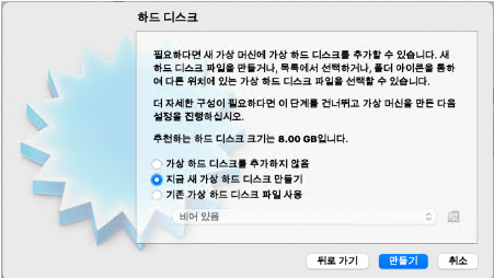▶ 가상 머신을 새로 만드므로 '지금 새 가상 하드 디스크 만들기' 선택