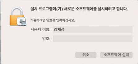 ▶ 비밀번호 입력 후 소프트웨어 설치(Mac 사용자 계정 비밀번호)