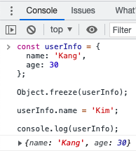 console.log('동결 후: ' + Object.isFrozen(userInfo));