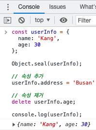 다음은 Object.seal()