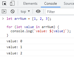 for...in문을 사용합니다. - 배열을 반복문으로 순회하여 값과 인덱스에 접근해야 하는 경우