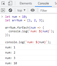 forEach문 외부에 선언된 변수 num의 값은 변경되지 않습니다.