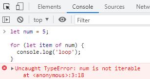 반복적이지 않은 요소가 for...of문을 사용하는 경우 TypeError가 발생합니다.