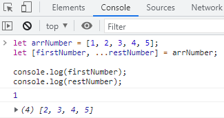 JavaScript의 구조 분해 기능을 사용하여 배열 arrNumber의 첫 번째 요소인 1은 변수 firstNumber에 할당되었으며, 나머지 요소들은 restNumber에 할당되었습니다.