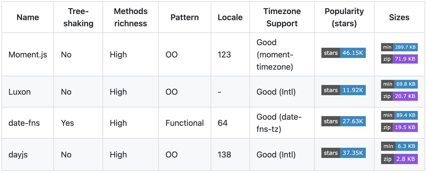 Moment.js의 단점을 극복하기 위해 Day.js, Luxon.js, date-fns.js 등 여러 라이브러리들이 개발되었으며, 이번 포스팅에서는 Day.js 라이브러리에 대해 소개합니다.