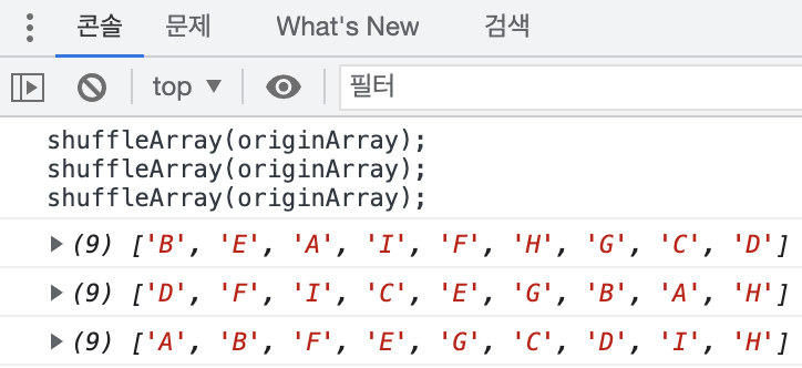 // 배열이 잘 섞였는지 확인하기 위함.