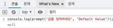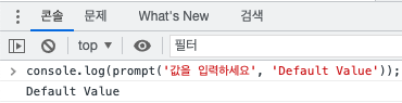 let promptObj = prompt('값을 입력하세요', 'Default Value');