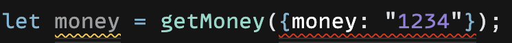 Union 타입을 사용하여 함수 getMoney()의 매개변수로 string 타입과 number 타입만 허용한다는 것을 명시해주며, 자동 완성 및 IntelliSense 기능으로 문제가 되는 코드를 확인할 수 있습니다.