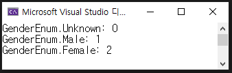 Console.WriteLine("GenderEnum의 값 리스트");