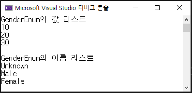Console.WriteLine("GenderEnum의 이름 리스트");