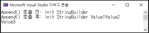 Console.WriteLine("Append() 호출 후: " + strBuilder);
