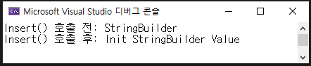 Console.WriteLine("Insert() 호출 후: " + strBuilder);
