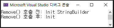 Console.WriteLine("Remove() 호출 후: " + strBuilder);