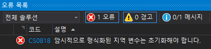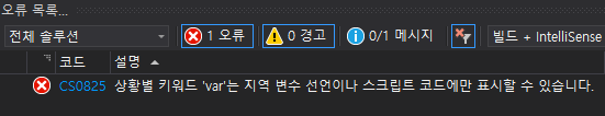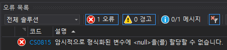 익명 타입으로 선언된 변수에는 null값으로 초기화할 수 없습니다.