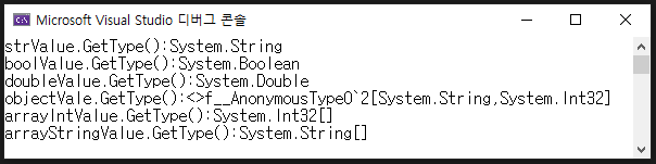 변수 str은 익명 타입으로 선언되었지만, 초기화 값이 문자열이므로 컴파일러가 변수 str을 문자열 타입이라고 결정합니다. GetType() 메서드를 사용하여 str의 타입이 String인 것을 확인할 수 있습니다.