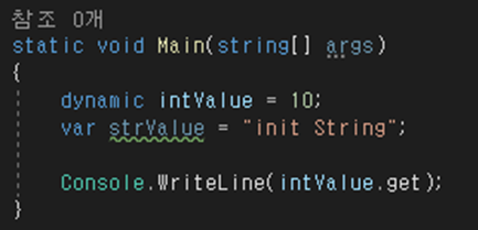 - Visual Stduio는 동적 타입에 대해 자동 완성과 같은 편리한 기능을 제공하지 않습니다.