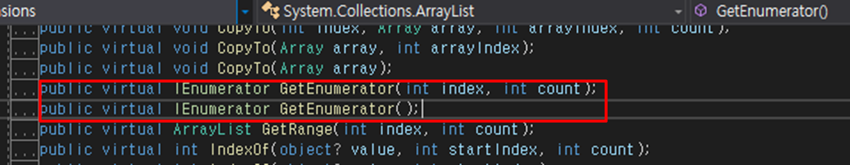 - MoveNext(): 다음 요소로 이동할 수 있는지 여부를 bool 값으로 반환합니다.